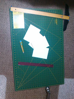 First of all, I'd have to prepare my illustration board. It comes in these huge 20xsomething sheets, and I figured I'd cut out some 5x7 cards to work with. I knew I'd definitely want one to test techniques on, and at least one other for the owl itself.